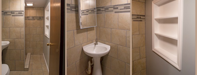 Basement bathrooms can be complicated. Many times they are an afterthought and therefore inefficient. That was the case for this cement block wall basement bathroom project we undertook, transforming it into a much more visually pleasing space, with some space-saving accommodations thrown in to help the homeowner with the lack of storage. This is one of our favorite before and after transformations!
