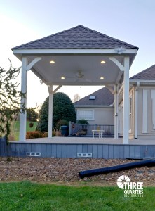 Here’s a few shots of a gazebo we recently completed for the Walker family so they can enjoy some shade on their deck. Check out the recessed lighting in the tongue-and-groove wood ceiling!